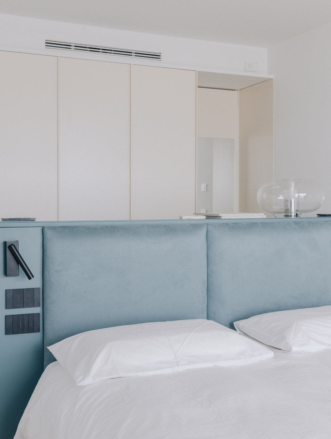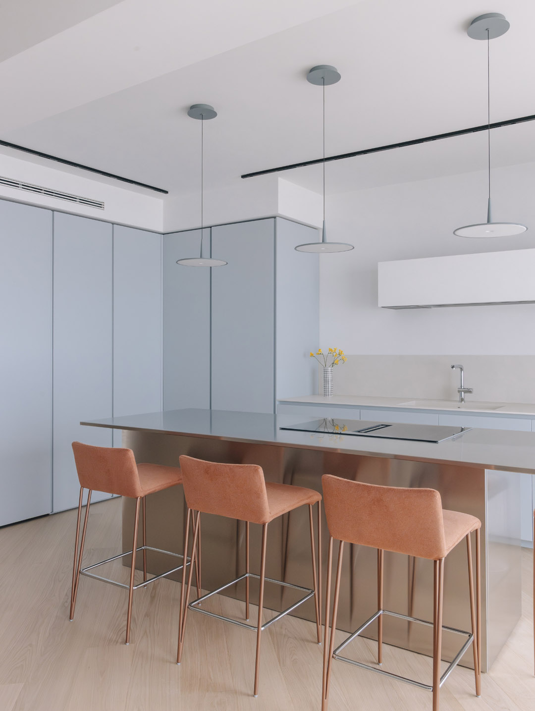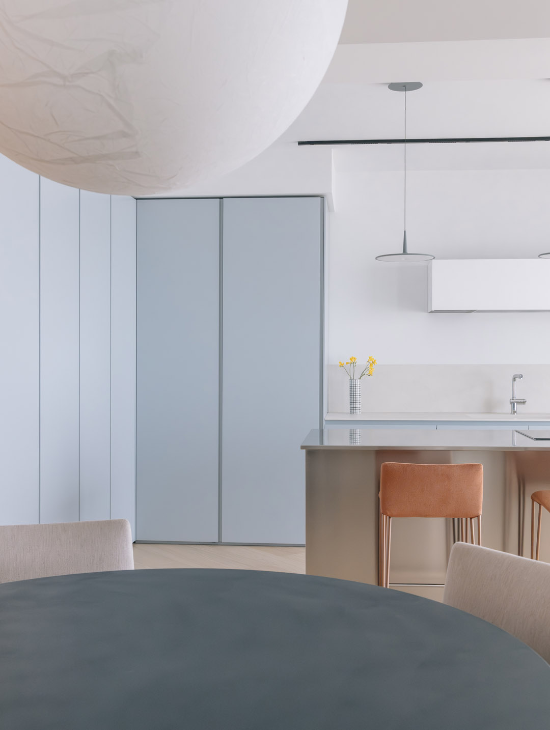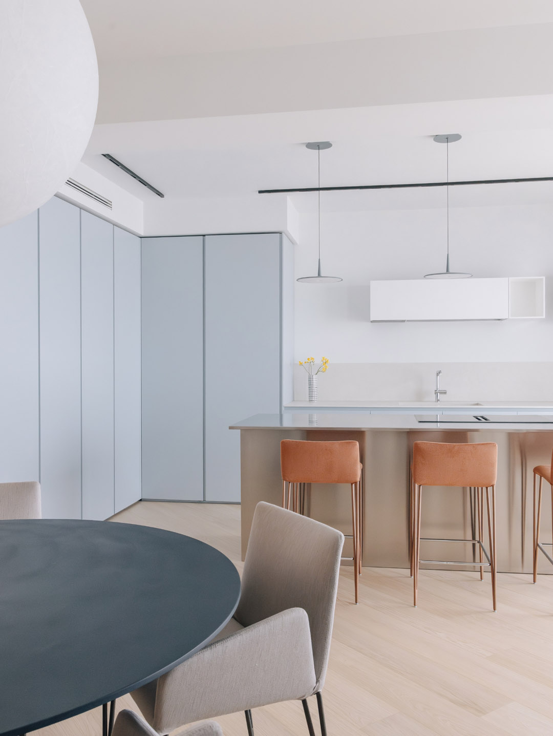 Con l’Arch. Debora Berardi abbiamo pensato ad ambienti che avessero continuità e giusta proporzione tra colori e finiture, portando così ad un richiamo vivo con acqua, sabbia, cielo e luna.