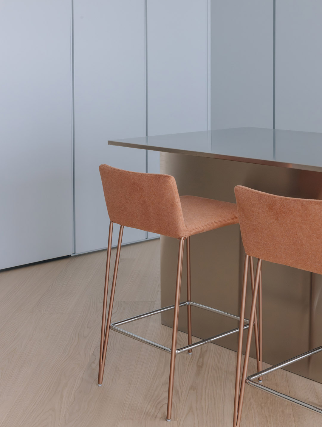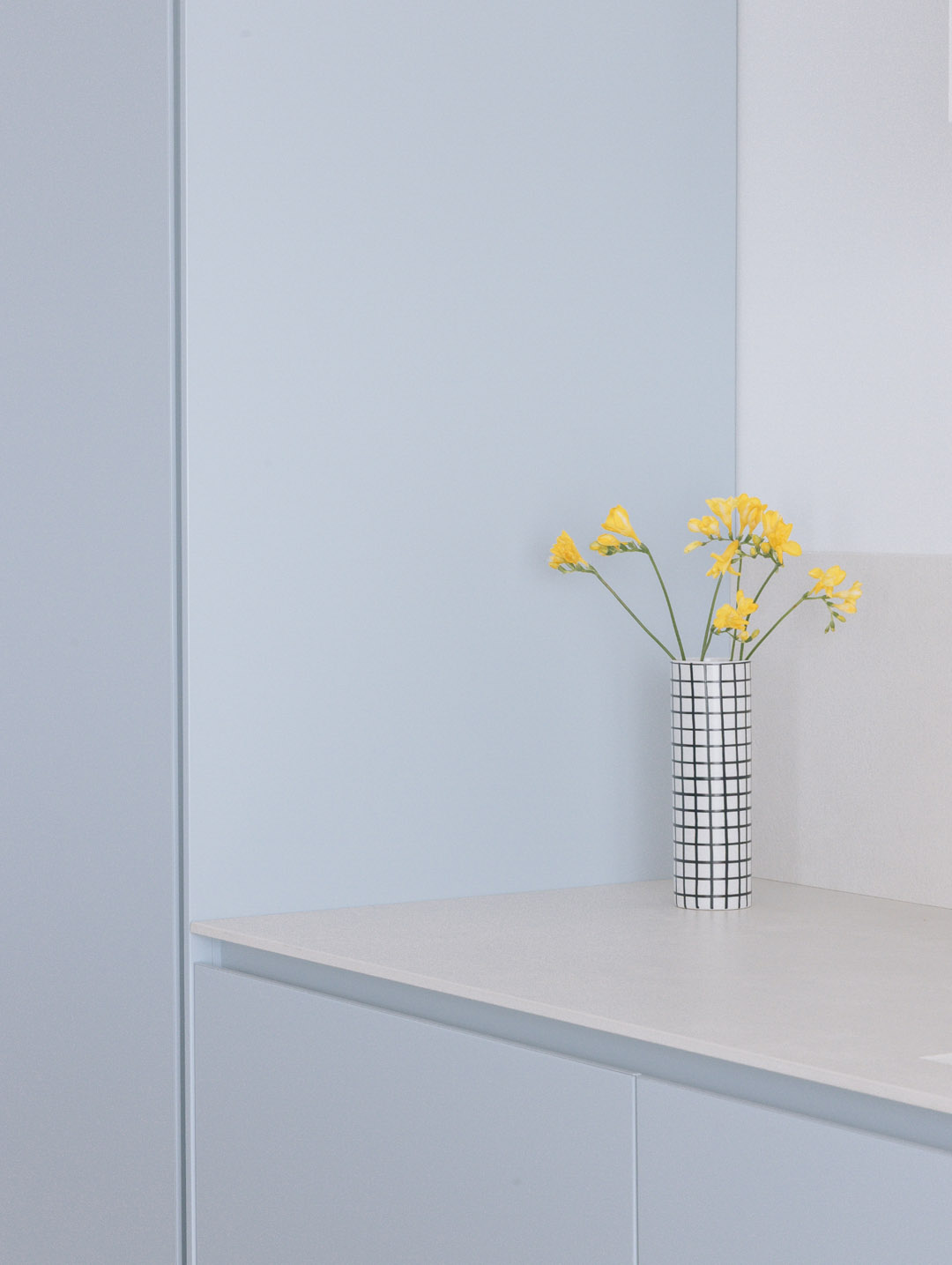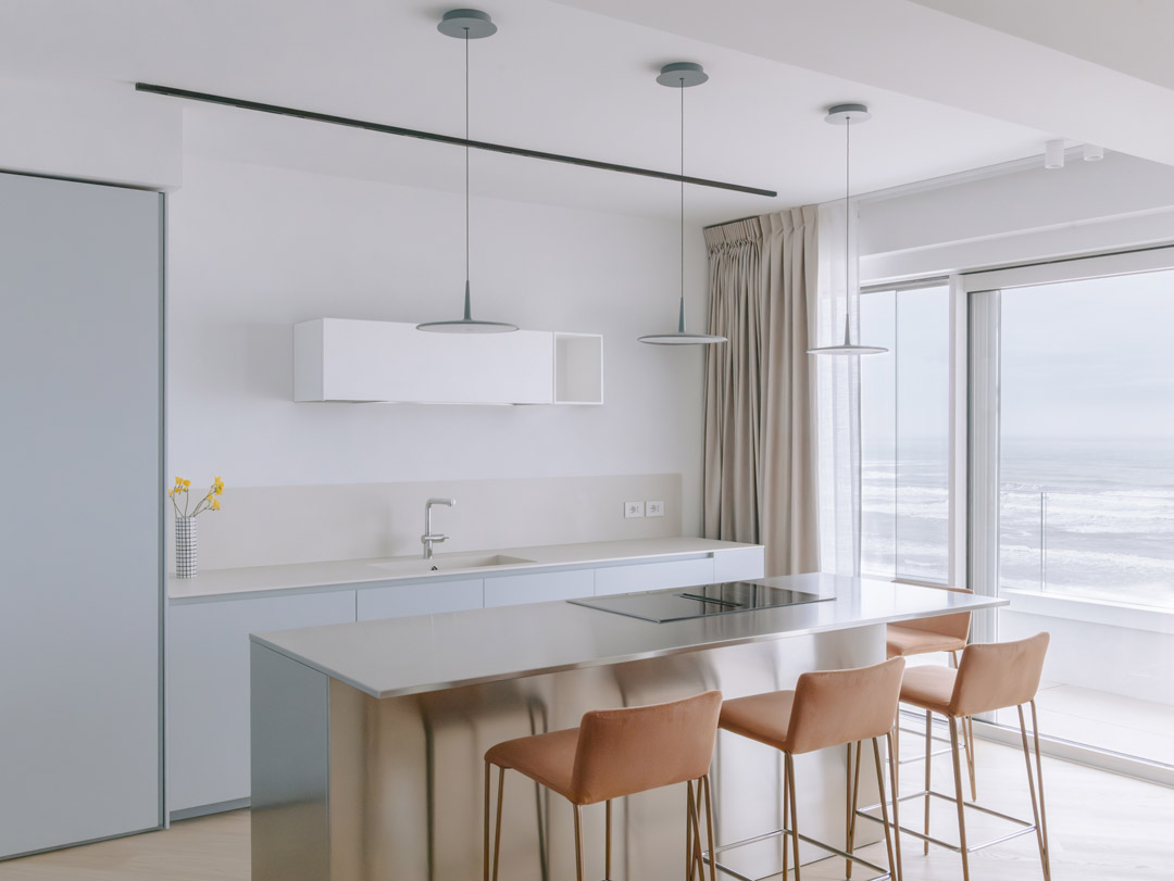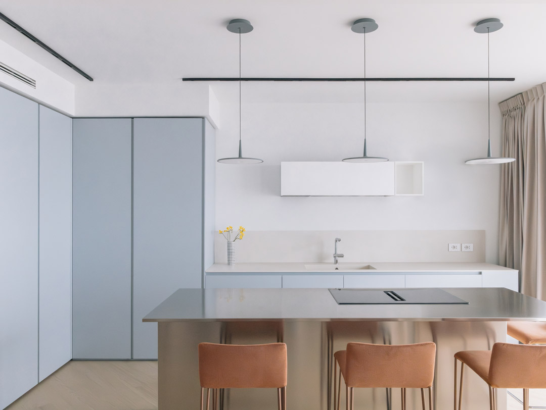 Con l’Arch. Debora Berardi abbiamo pensato ad ambienti che avessero continuità e giusta proporzione tra colori e finiture, portando così ad un richiamo vivo con acqua, sabbia, cielo e luna.