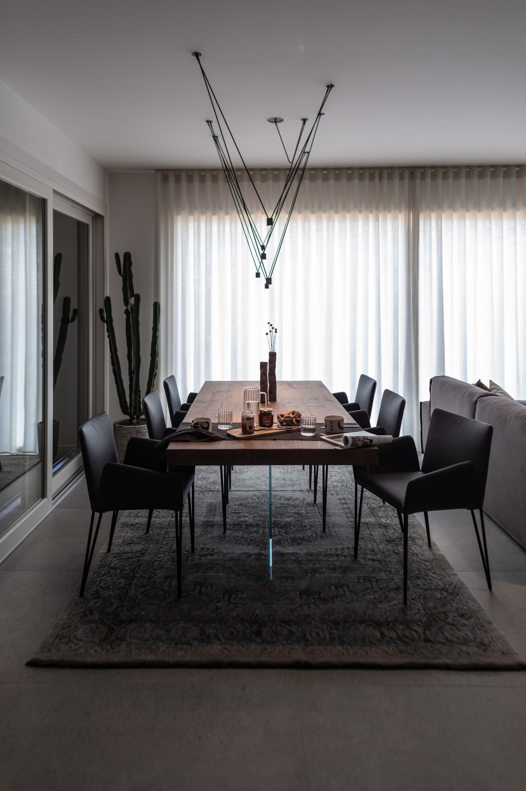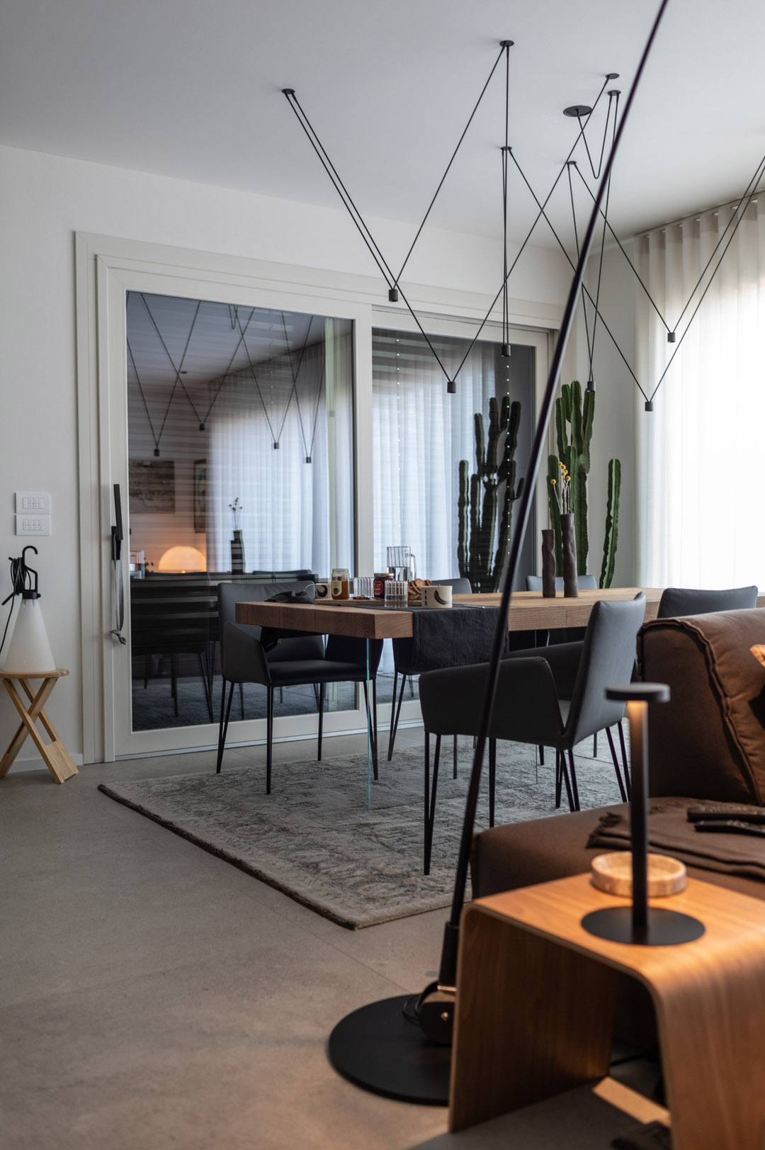 La bellezza dell’abitazione interna cresce ancor più grazie ai corpi illuminanti che spaziano dall’ iconico al tecnico.