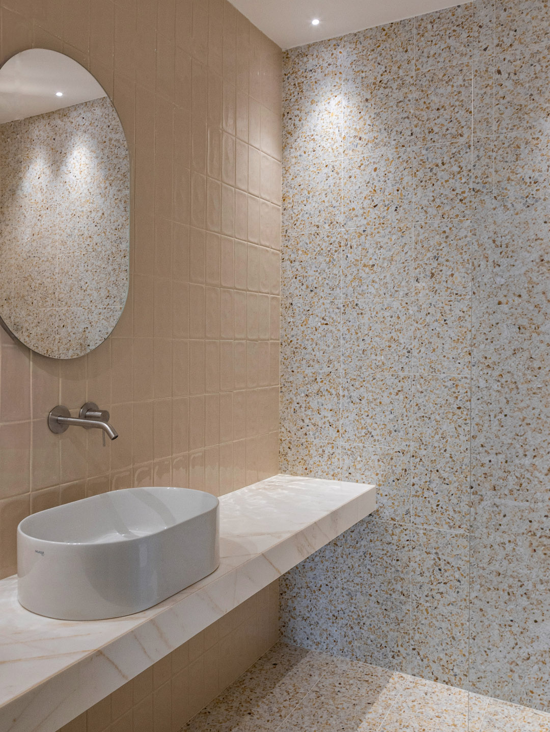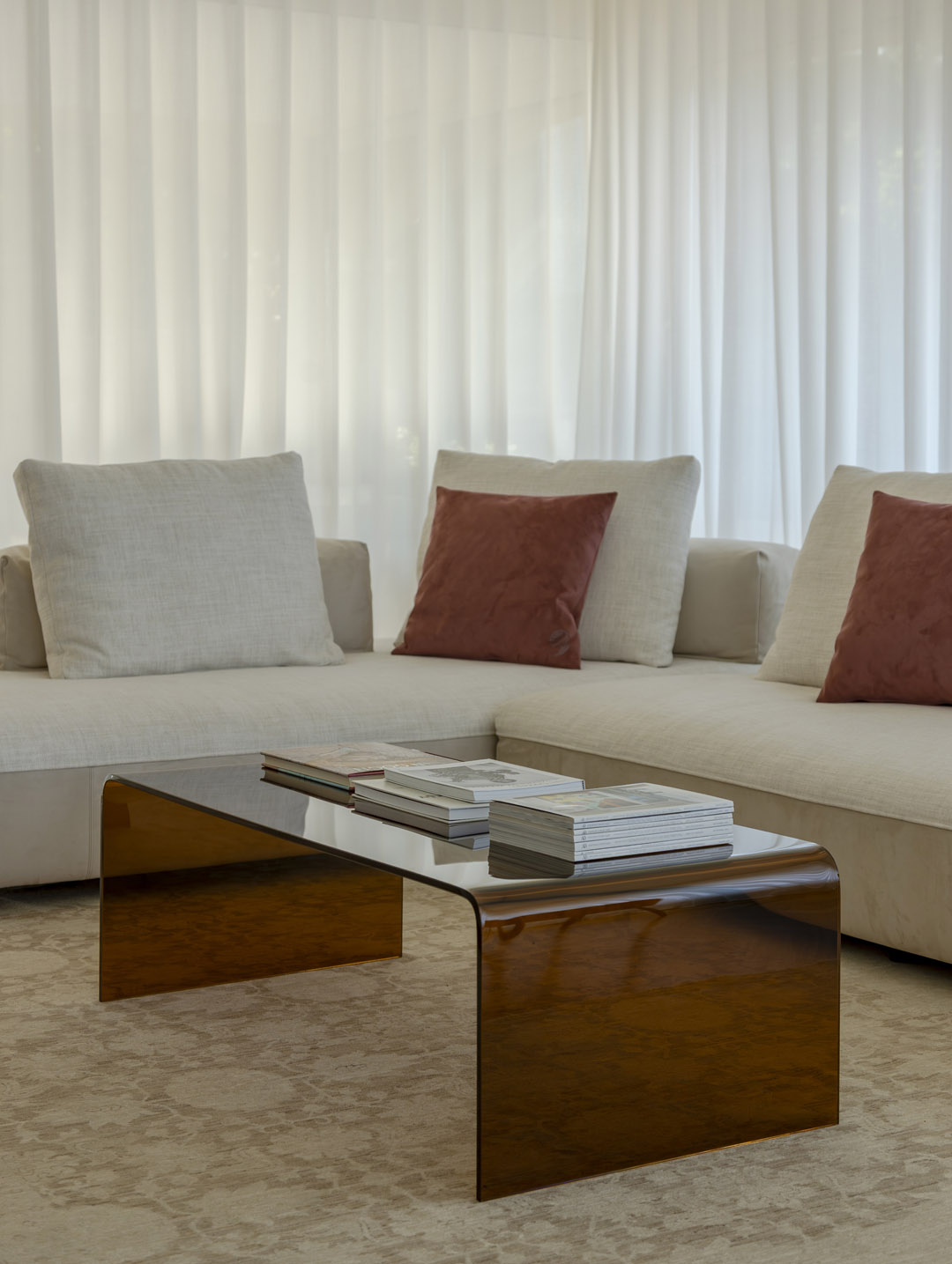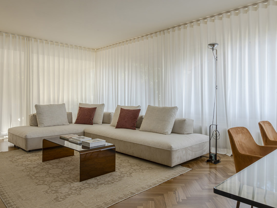 La luce naturale posa sui volumi esaltandone i dettagli, la materia è presente in maniera decisa ma non invasiva, il design risiede in ogni angolo.