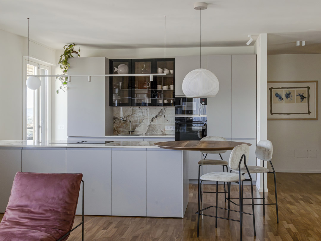 Materia, colore e luce sono i capisaldi che raccontano questo appartamento panoramico ristrutturato in Perugia. C’è forma, c’è carattere, c’è un costante equilibrio al suo interno da rendere gli spazi armonici e ospitali.