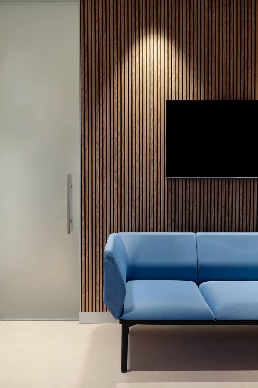 Il vecchio laminato a terra è stato sostituito con una pavimentazione resiliente cosi da essere duratura nel tempo e piacevole al calpestio. La bellezza delle porte in vetro a tutt’altezza restituisce invece valore alla struttura dal punto di vista architettonico.